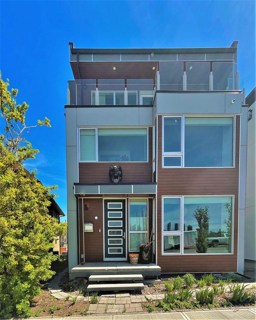 Both homes feature carefully planned terraces. These terraces serve multiple purposes and present several benefits. These terraces are designed not only to frame views but also to protect the privacy of the neighbors. Additionally, these tiered setbacks reduce the massing of the structure and provide more exterior space to be enjoyed by the residents as the lot itself is quite modest.
