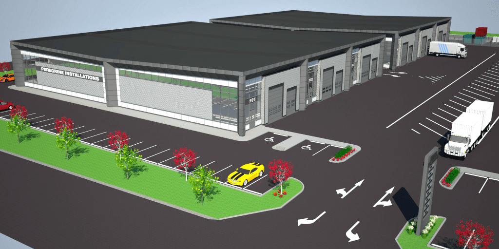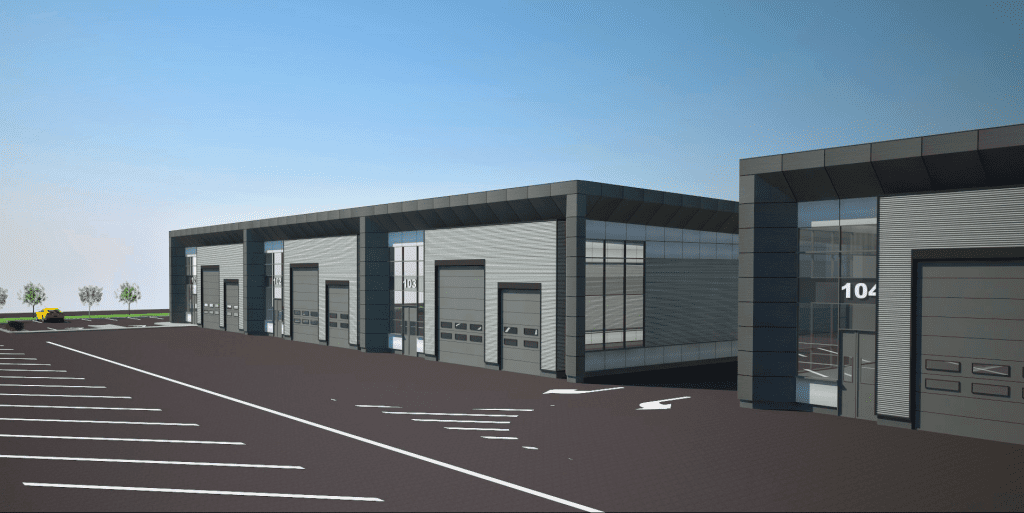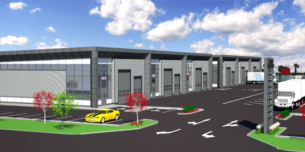 We created an industrial condominium for a wide spectrum of businesses and affiliated uses that are compatible with each other and do not harmfully affect the usage of the surrounding land. We proposed three buildings with 14 industrial units on 6 acres with visitor parking and a storage yard with a building area of about 100,000 sq. ft.