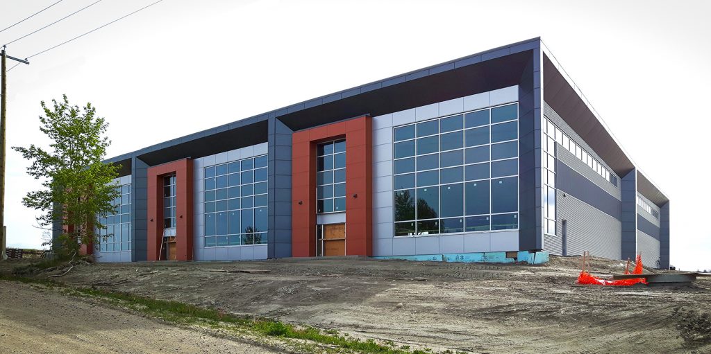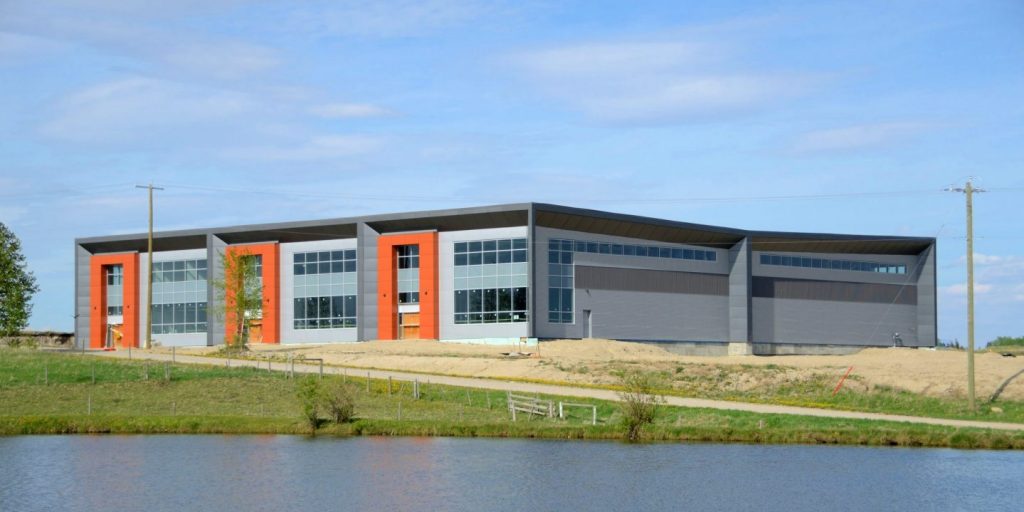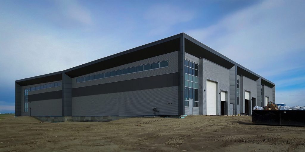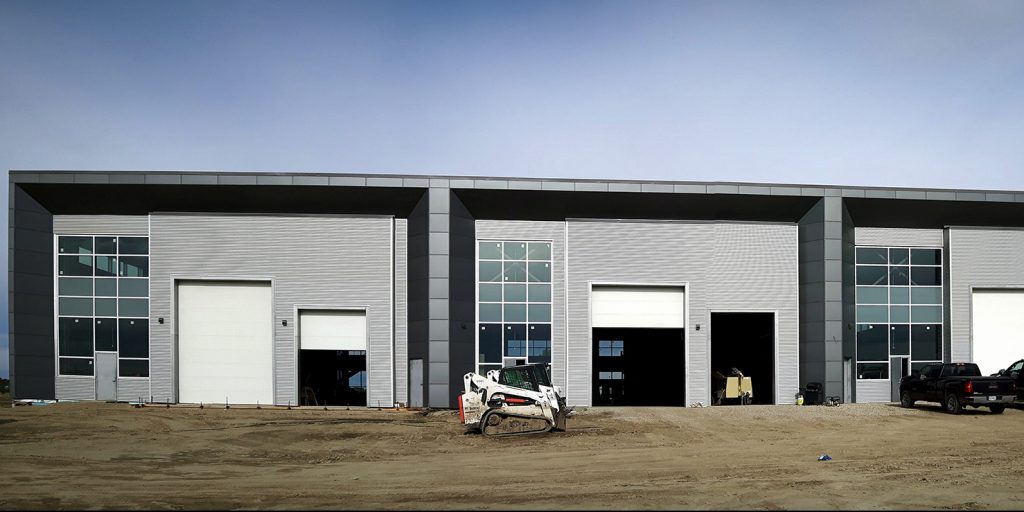KDG was approached by a new client to develop a contemporary industrial park in the new commercial / industrial subdivision of Crossfield. Being the first development in the new subdivision, our goal was to enhance the appeal of both Laut Avenue and Range Road 12 and create a building that acts as a focal point for the intersection.