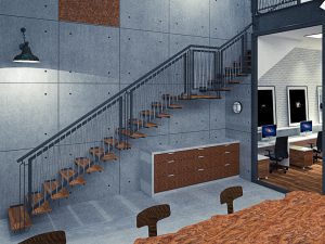 KDG transformed a 3,000 sq. ft. industrial bay, into a vibrant office space with entertaiment and dining areas. The result is a two level multifunctional space that can be used by our client for business and personal needs.