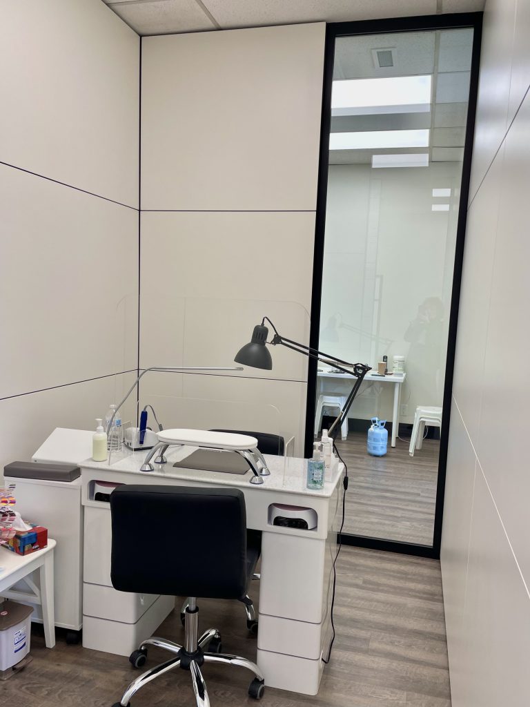 The design of the boutique utilizes the FALK BUILT (TM) partition wall system that divides the work space into separate rooms. This ensures the comfort and privacy of MOOD clients and adds to the salon’s luxury service experience.