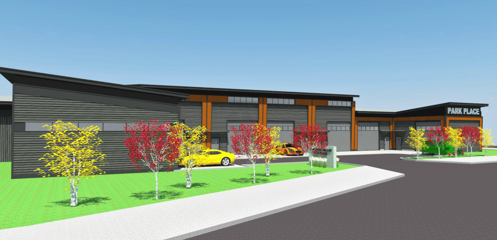 Park Place is ideal for collectors, entrepreneurs and artists looking for luxury vehicle storage or space for small businesses or art studios. Parking and building areas will be tastefully landscaped with trees and shrubs.