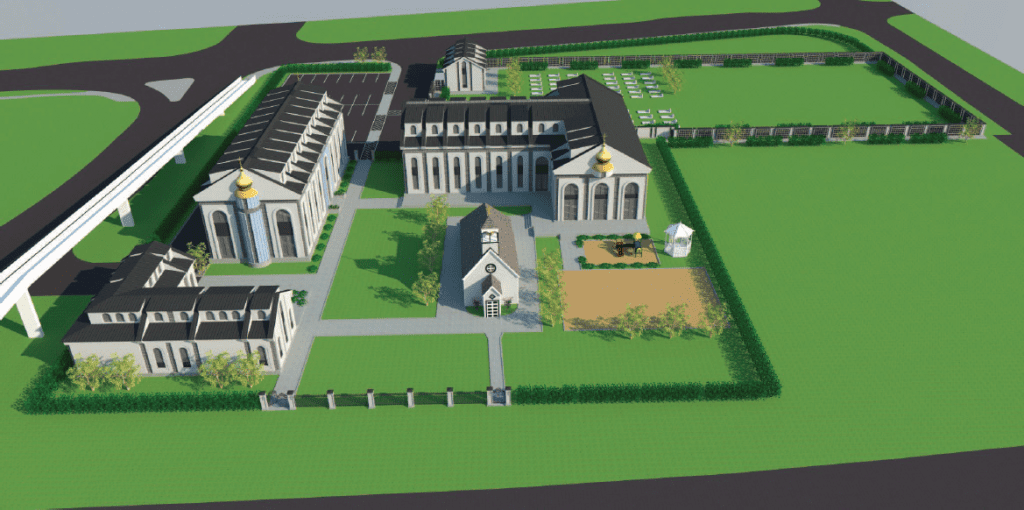 The location's historical significance, its designation as a protected site, its proximity to major public transit infrastructure (Fishcreek Lacombe LRT station) and the client's need for the completed project to be distinctly Russian Orthodox in character presented unique design challenges.